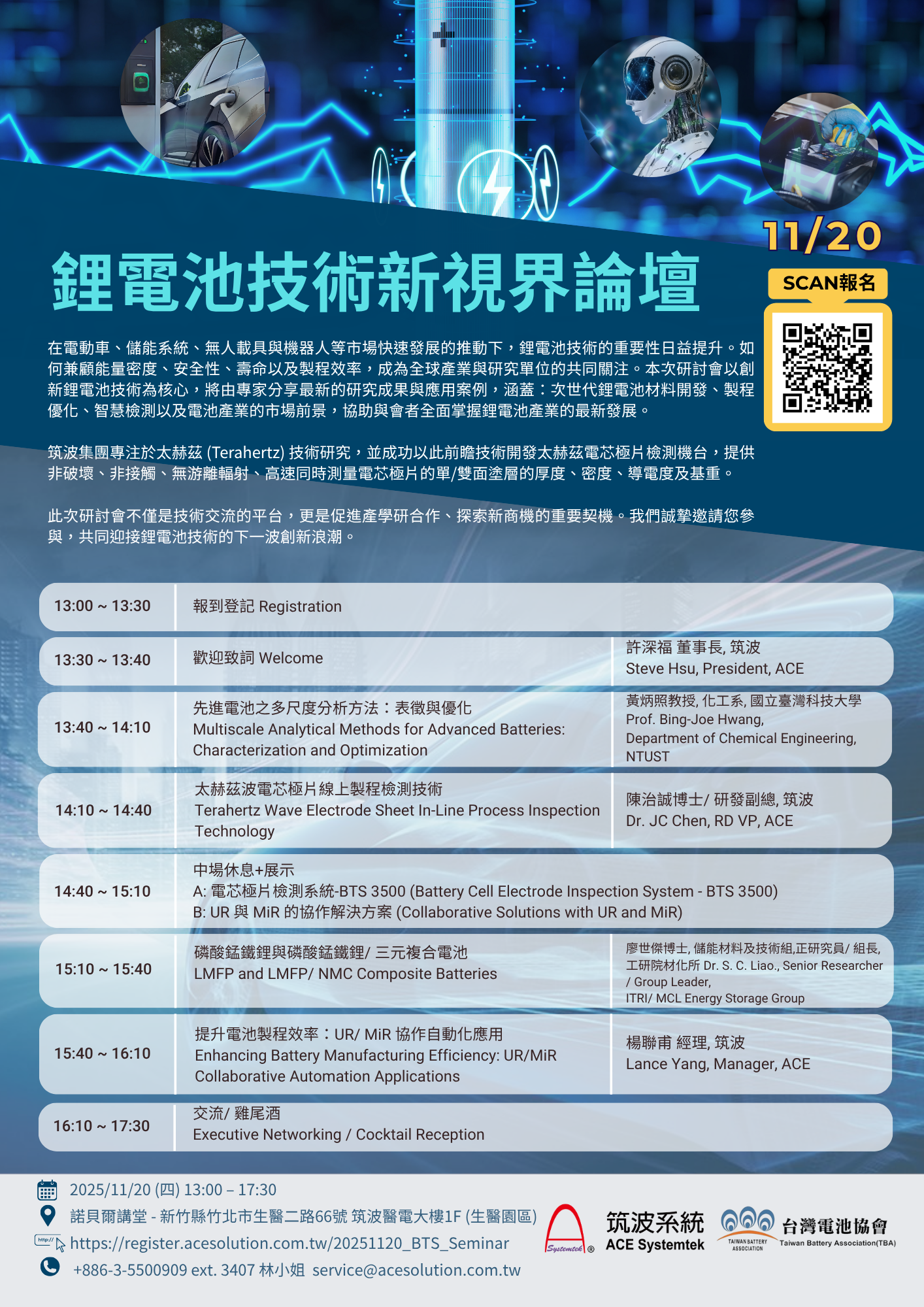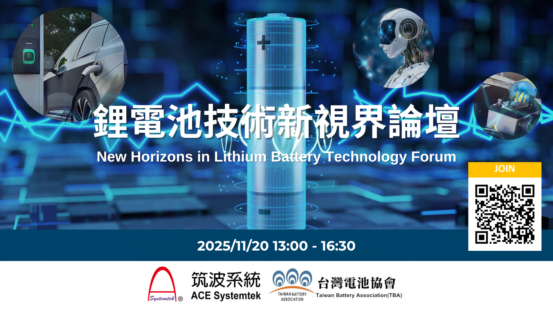 11/20(四) 鋰電池技術新視界論壇 刊登日期:2025-11-12 │ Source:筑波科技